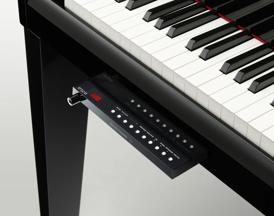 Hybrid pianos are instruments that combine elements of both acoustic and digital pianos, offering the authentic touch and feel of a traditional acoustic piano with the versatility and features of digital technology. They typically feature a real wooden piano action, such as the Millennium III Hybrid Action from Kawai or the real acoustic actions used by Yamaha, which provide a responsive playing experience that replicates the touch and feedback of an acoustic piano without the need for regular tuning or significant maintenance. These instruments often include digital components like high-fidelity sampling, built-in speakers, headphone jacks for silent practice, recording capabilities, and connectivity options such as Bluetooth and USB.
