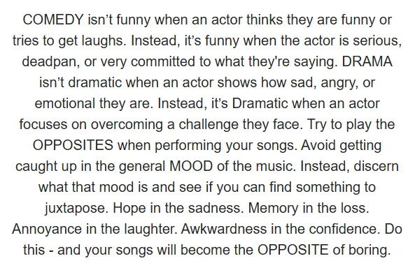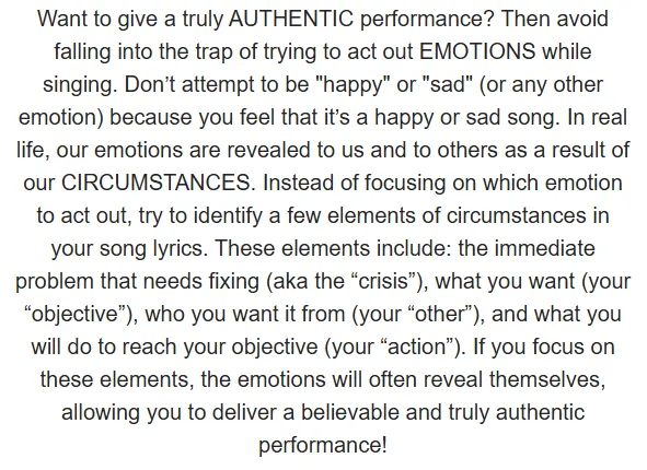 We all strive to be EXCELLENT in our artistry. However, no artist, performer, or singer is PERFECT. It’s important to make the distinction between Excellence and Perfection. To be Excellent is to EXCEL. It is the ongoing state of excelling and doing well. In other words, Excellence is a process and not a final result. Perfection, on the other hand, is static. It is something that is already fully whole and complete. This is why Perfection is never attainable for any artist. Nor should we desire to attain it. Because if we were Perfect, we would be DONE. But, thankfully we can never be Perfect. So, our artistic and vocal journey continues every single day. Our Freedom comes from letting go of the desire to be perfect. Our Joy comes from the constant state of pursuing Excellence. And our Excellence comes from our Joy and Freedom to sing!